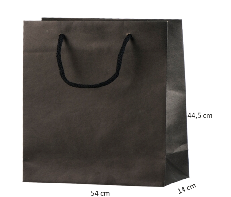Kestävä paperikassi, joissa on käännetty yläreuna, pohjapahvi ja narukannikkeet.
