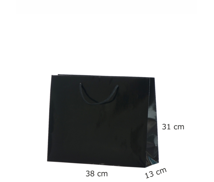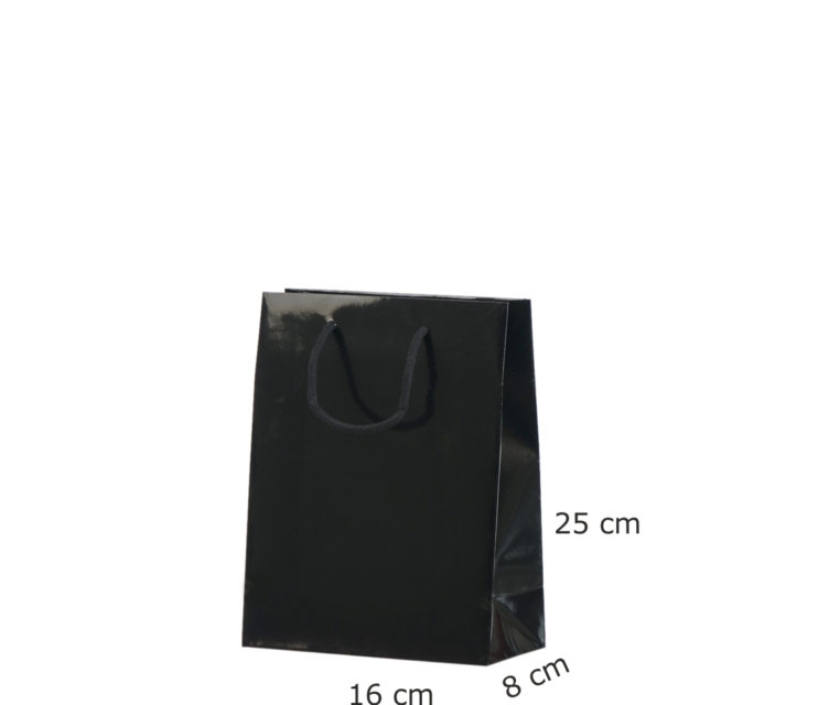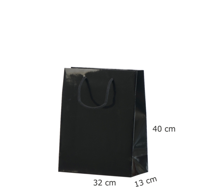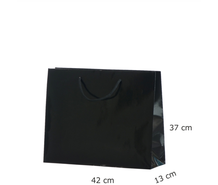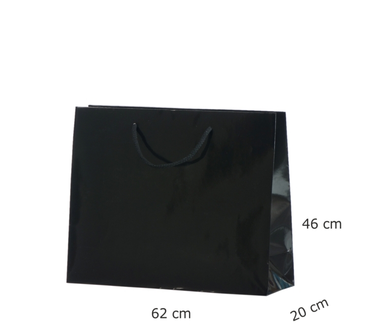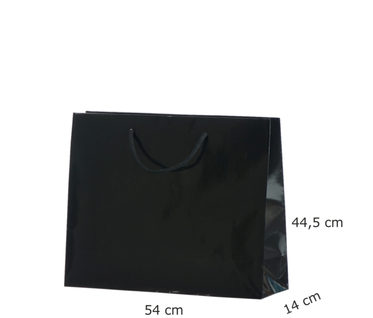 Valikoimamme sisältää 9 eri kokoa mustia kirkaslaminoituja paperikasseja