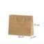 Tehdään paksusta, ruskeasta riplatusta 160 g paperista. Käännetyn yläreunan ansiosta kassi on huoliteltu ja kestävä. Pohjapahvi parantaa tukevuutta. Ruskeat puuvillanarusta tehdyt kannikkeet.