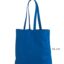 Sininen kangaskassi leveällä pohjalla valmistetaan 220 g puuvillasta. Kassin kahvat ovat pitkät, joten kassia on mukava kantaa olkapäällä.