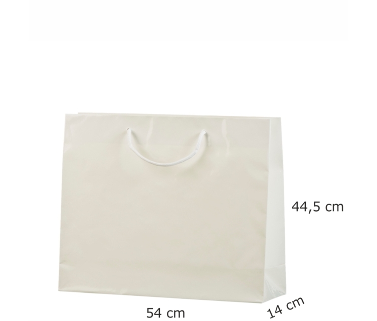 Valikoimamme sisältää 6 eri kokoa valkoisia mattalaminoituja paperikasseja.
