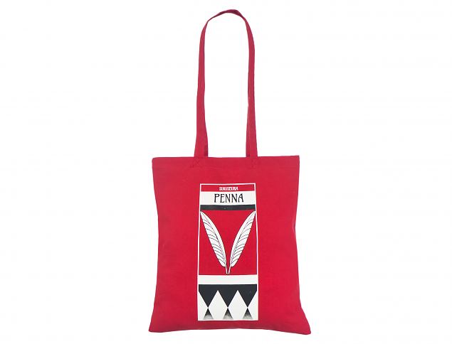 Fotogalerii- punast värvi riidest kott trükiga