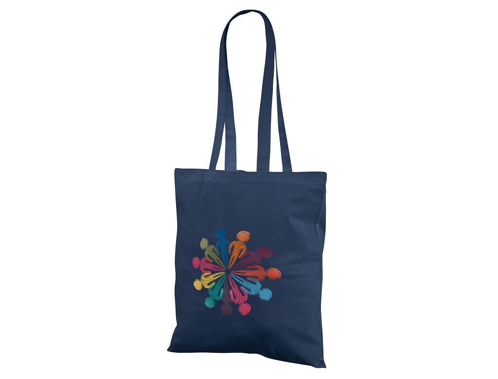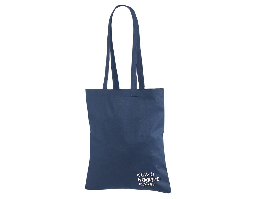 Fotogalerii- tumesinist värvi riidest kott trükiga Logoga tumesinist värvi riidest kott . Trükiga