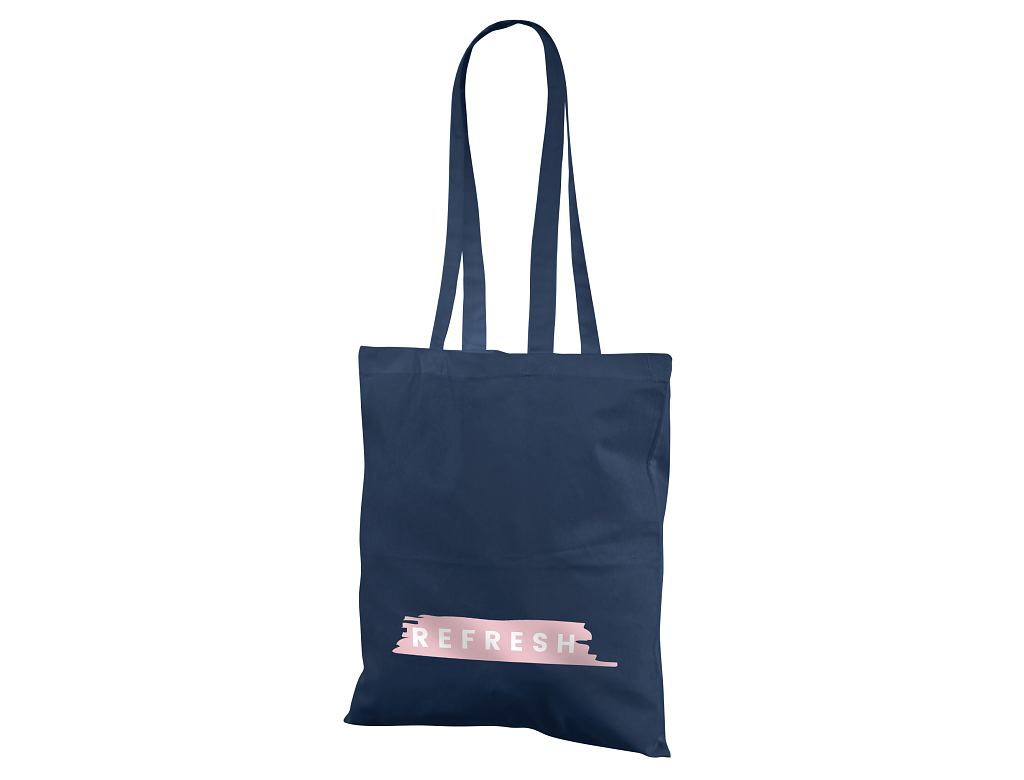 Fotogalerii- tumesinist värvi riidest kott trükiga Tumesinist värvi riidest kott personaalse logo